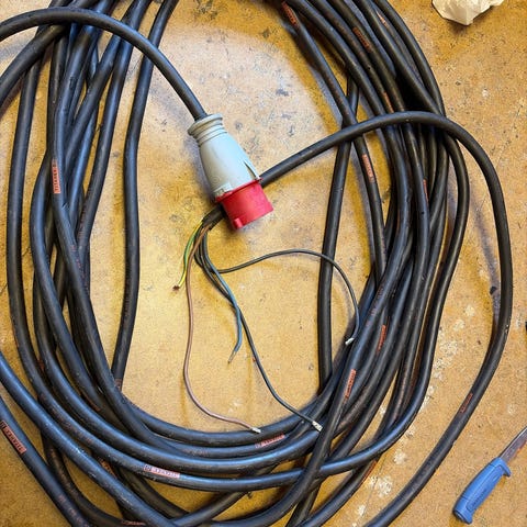 Kabelen er gummikabel (Flextreme H07 RN-F 4x6mm2). Må hentes.