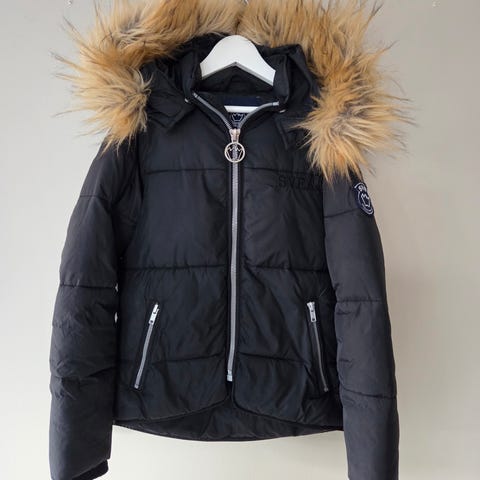 Svea dunjakke for jente i størrelse 140. Jakken er blå og fylt med dun. Den har hette med avtakbar fuskepelskant, glidelåslukking foran og vattert, quiltet design for jevn fordeling av dunfyllet. Egnet som ytterjakke i kaldere vær for barn i aktuell størrelsesgruppe. Jakken er liten i str.