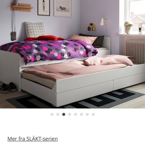 IKEA NORDLI seng med skuffer i svart utførelse. Sengen har integrerte oppbevaringsskuffer under liggeflaten som gir ekstra lagringsplass for for eksempel sengetøy eller klær. Rammekonstruksjonen er rett og lav, egnet for plassering mot vegg eller frittstående i rommet. Passer til standard madrass i tilsvarende Designet er enkelt og moderne, tilpasset ulike soveromsløsninger.