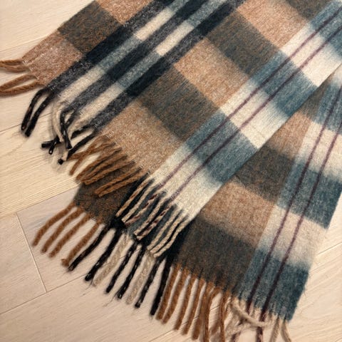 Mønstrete pynteskjerf i grått og rosa fra Culture. 100 % viskose. Transparent og tynt stoff.