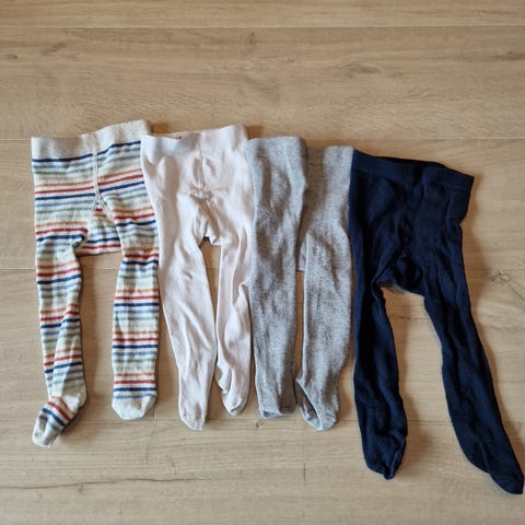 Selger tre stk pent brukte strømpebukser i str 62/68. To fra H&M og en fra Safa. Den med bamsemønster er i ull.