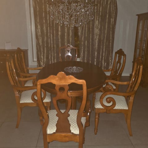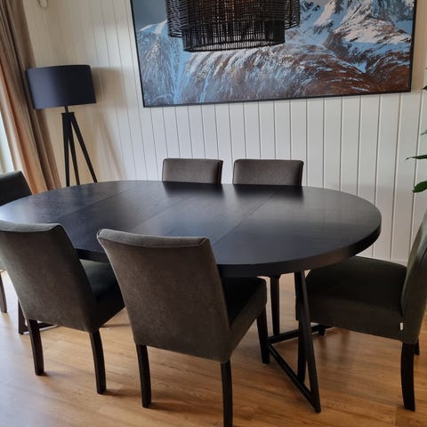 Lite brukt rundt bord og stoler selges da det ble for stort. Kjøpt for 3 mnd. siden: