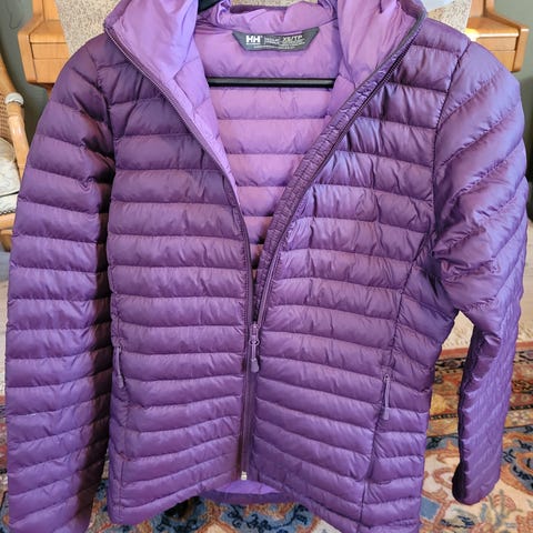 Norrøna Trollveggen Superlight Down850 dunjakke for dame i størrelse M. Jakken er blå og fylt med dun (Down850). Lett, vattert ytterjakke som gir isolasjon og kan brukes alene eller som mellomlag under skalljakke. Modellen har hel glidelås i front og er quiltet for jevn fordeling av dunfyllet. Egnet til friluftsliv og hverdagsbruk i kjølige temperaturer.