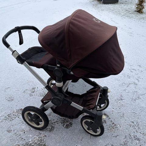 Bugaboo barnevogn med sportsdel i blått og svart tekstil. Vognen har justerbart håndtak, svingbare framhjul og større bakhjul. Setet har fempunktssele og avtagbar frontbøyle. Under setet er det en oppbevaringskurv. Passer til hverdagsbruk og trilleturer på varierende underlag.