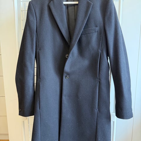 Filippa K ullkåpe for herre i størrelse 46. Kåpen er grå og laget i ullmateriale med glatt fôr på innsiden. Klassisk modell med krage, knappelukking foran og frontlommer med klaff. Egnet som ytterjakke i kjøligere vær og kan brukes både til hverdags og mer formelle anledninger.