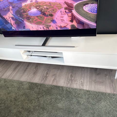 Veldig pent brukt møbel med oppbevaring. Fin ren overflate. Til sammenligning og for å få en følelse av møbelet, så står det en 64tommers TV oppå :)