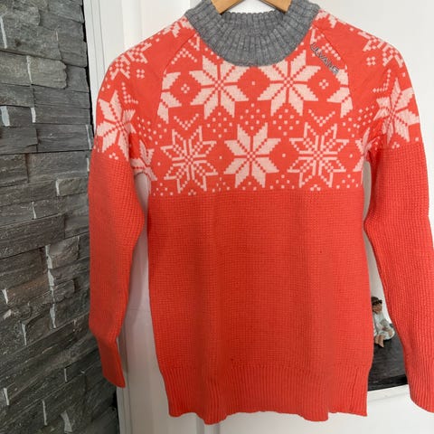 Ulvang ullgenser for dame i størrelse S. Genseren er grønn og laget av 100 % ull. Den har høy hals, lange ermer og ribbestrikkede kanter nederst og på ermene. På ermene er det tommelhull med kontrastfarge. Egner seg som mellomlag eller ytterste lag ved kjøligere vær. Vaskes på ullprogram etter anvisning på vaskelappen.
