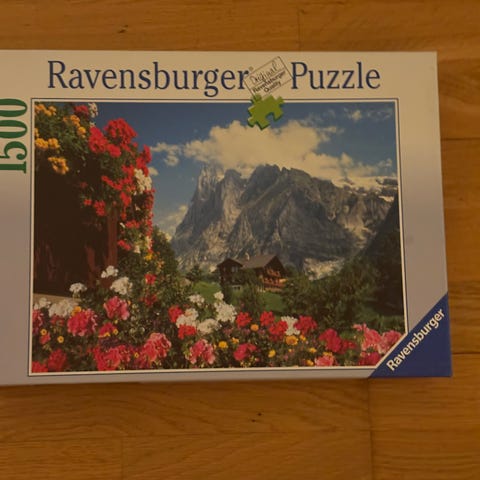 Ravensburger puslespill med 500 brikker. Motivet viser et fjellandskap med fossefall, fjell og hus i forgrunnen. Puslespillet leveres i original eske og er puslet 2 ganger