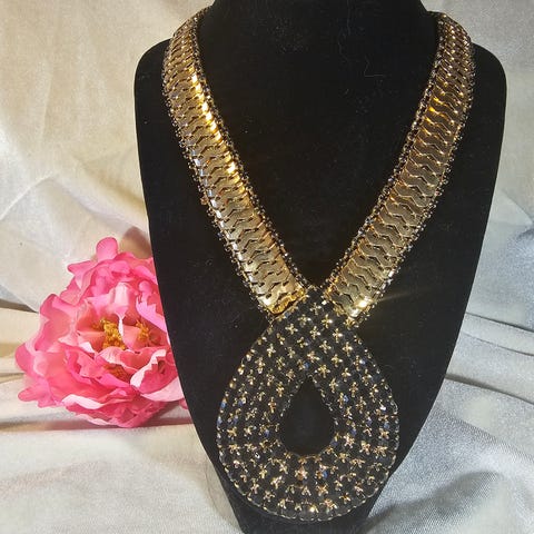 Smykket har: – Mange kjeder både i nakken og hengende ned