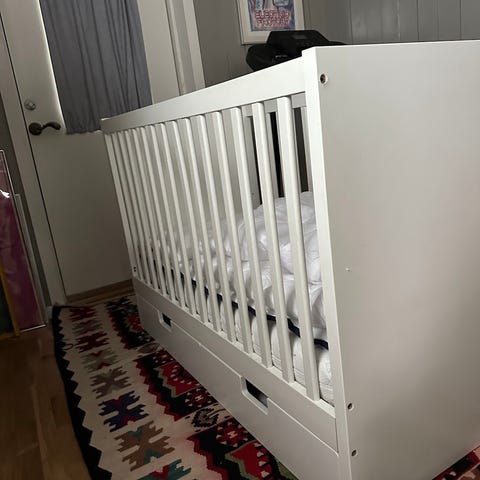 Sprinkelseng seng fra IKEA med to praktiske skuffer. Sengebunnen kan justeres i to høyder.