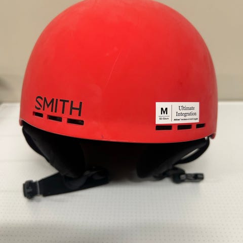 Brukt en gang. Smith Holt hjelm i størrelse medium (55–59 cm). Hjelmen har hardt ytterskall og innvendig polstring for økt komfort. Farge rød med svarte detaljer. Justerbar stropp under haken. Egnet som allround hjelm til aktiviteter som ski, snowboard eller sykling der denne typen hjelm er passende etter brukerens behov og gjeldende sikkerhetskrav.