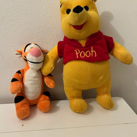 Grisen kan brukes som pute. Ole Brum og Tigergutt er pent brukte. Hjorten og lundefuglen er som nye, sto som pynt på barnerommet . 100kr pr stykk