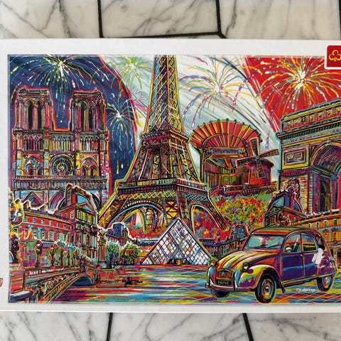Trefl puslespill med 500 brikker og motiv av påskeegg i rede. Bildet viser fargerike egg og blomster i vår- og påsketema. Egnet som aktivitet for én eller flere personer. Ferdig puslet kan motivet brukes som dekorasjon dersom det monteres i ramme.