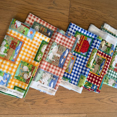 Bordløper med rutemønster og kaninmotiv flerfarget