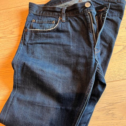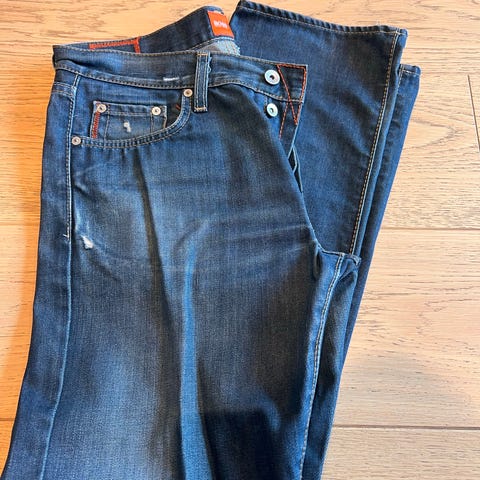 Hugo Boss jeans for herre i størrelse M med livvidde W31. Buksen er laget i denim og har grå farge. Klassisk 5-lommersmodell med knappelukking i front. Passer til hverdagsbruk og kan kombineres med både skjorte og t-skjorte.