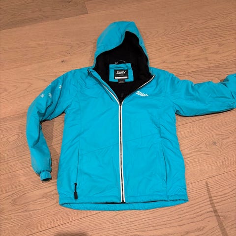 Swix jakke i blå farge. Jakken har hel glidelås foran, høy krage i kontrastfarge og to glidelåslommer i siden. Elastiske mansjetter ved håndledd og strikk nederst i livet for bedre passform. Passer til utendørsaktiviteter som tur og ski.