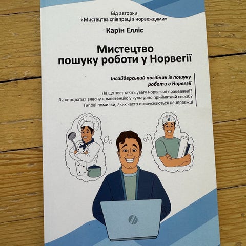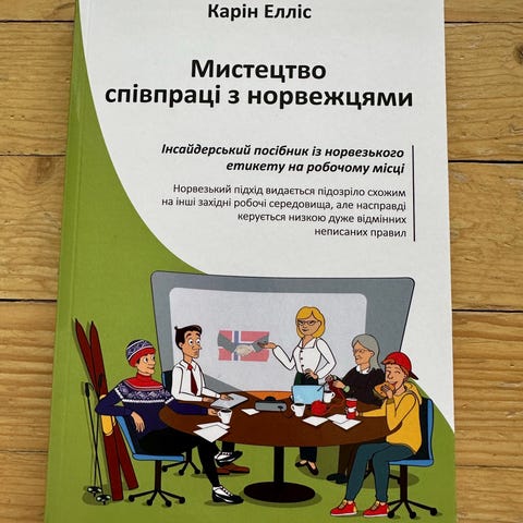 Karin Ellis «Мистецтво співпраці з норвежцями» bok på ukrainsk. Boken tar for seg samarbeid med nordmenn i arbeidslivet og gir informasjon om norsk arbeidskultur og kommunikasjon. Myk perm (paperback). Teksten er på ukrainsk, med eksempler og forklaringer tilpasset yrkesliv og hverdag i Norge.