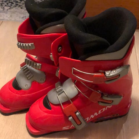 Salomon T3 alpinstøvler for barn i størrelse 22/22,5. Tilsvarer ihht størrelsestabell på nett skostørrelse 35/36. Støvlene er røde med svarte og hvite detaljer. Modellen har tre justerbare spenner for god tilpasning rundt fot og legg. Myk og polstret innerstøvel gir komfort og støtte.