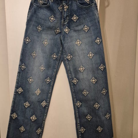 Kul bukse med broderte detaljer og røff kant. Brukt få ganger