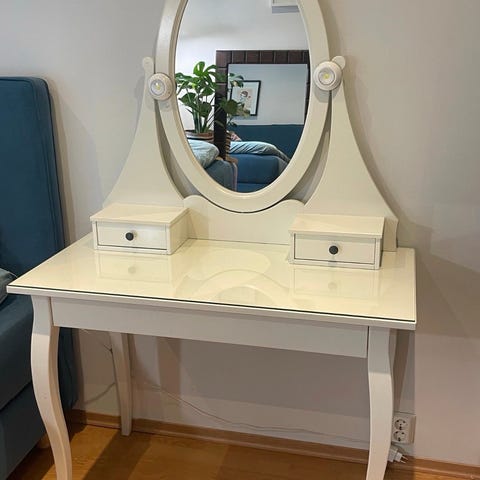 Pent brukt IKEA/Hemnes speilbord med 3 skuffer. Glassplate følger med.