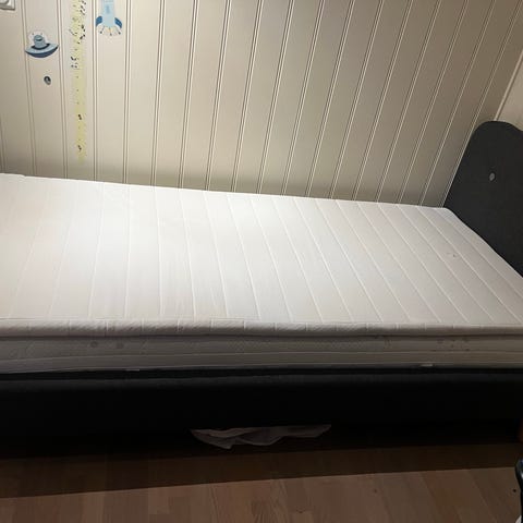 En godt brukt seng sånn som du kan oppbevare ting i. Den har ingen problemer eller skader med den!