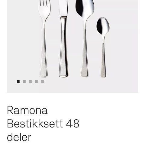 Eva Solo bestikk sett i rustfritt stål. Bildet viser kniv, gaffel, spiseskje og teskje i et enkelt og tidløst design. Bestikket passer til daglig bruk på kjøkkenet eller til borddekking ved ulike anledninger. Materialet er lett å rengjøre og egnet til bruk sammen med vanlig servise og glass.
