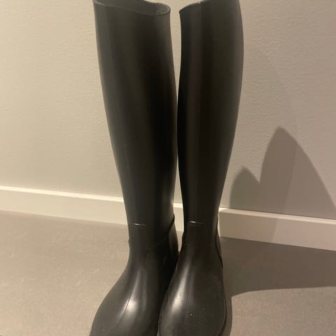 Høye Ridestøvler i svart farge. Støvlene går opp til under kneet og har glatt overflate. De har avrundet tå og lav hæl. Passer til bruk i vått vær og i stallen.