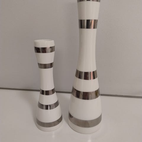 Kähler lysestake med flere armer i sølvfarget metall. Lysestaken har plass til flere stearinlys og er utformet med dekorative detaljer på stammen. Passer til bruk på bord, skjenk eller andre flater der man ønsker tradisjonell belysning med levende lys.