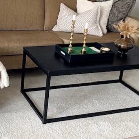 Rektangulært salongbord i svart utførelse. Bordet har en slank metallramme og en bordplate i matchende svart materiale.