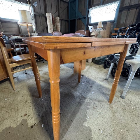 Malt/patinert rødt med dekorasjoner langs bordkanten