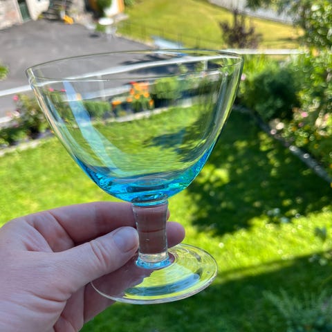 Glass på stett blått glass