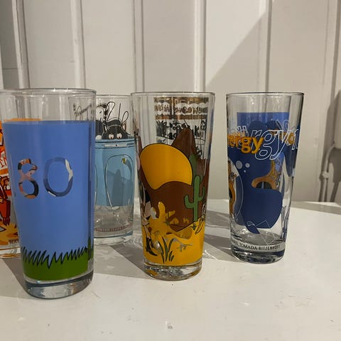 Glassene er så og si ubrukt, kanskje to-tre av dem er brukt en gang. Ellers stått i skap.