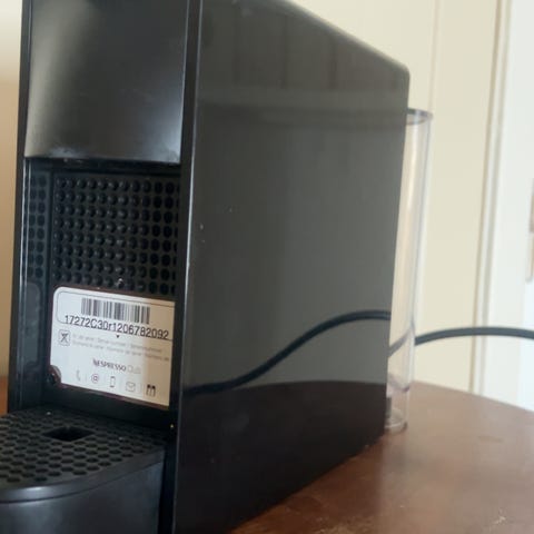 Nespresso kaffemaskin kapselmaskin i svart utførelse. Maskinen har avtakbar vanntank bak og dryppbrett foran. Den bruker Nespresso-kapsler til tilberedning av kaffe og espresso. Kompakt design som passer på kjøkkenbenk eller mindre flater.