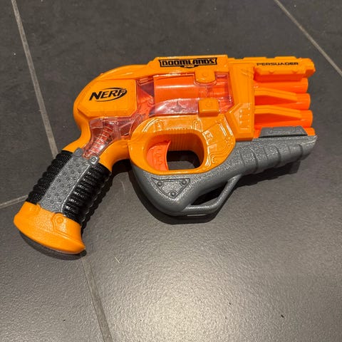 Marvel lekesett med Thor-hammer og Iron Man-armbånd. Skyter nerf-skudd. Funker fint og alle skuddene er med.
