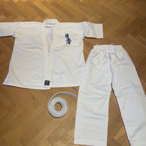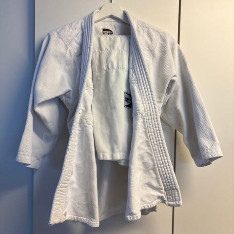 Kampsportdrakt i unisex størrelse XS i blå farge. Drakten består av jakke og bukse. Passer til ulike typer kampsporttrening. Stoffet er vevd og egnet for bevegelse og aktivitet. Egner seg for barn eller mindre personer som trenger en lett og funksjonell treningsdrakt til kampsport.