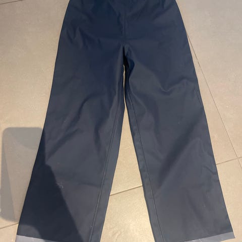 WL Regnbukse str. 134-140, ingen merker, pent brukt av ett barn. Mørkblå.