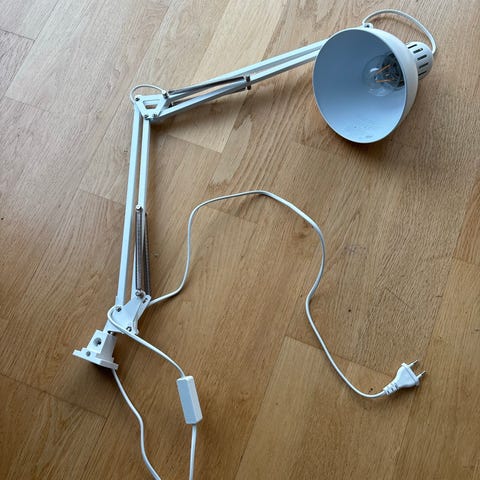 Bordlampen har justerbar arm og lampehode som kan vinkles for å rette lyset der det trengs. Den står på en rund, tung fot for stabilitet og har ledning med bryter. Lampen bruker E14-pære, maks 40 W (eller tilsvarende i LED). Egner seg til skrivebord, leseplass eller arbeidsområde hvor det er behov for direkte belysning.