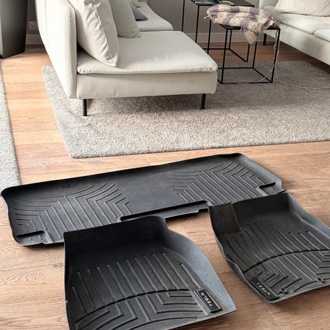 Pent brukt, fremstår i god stand. De to fremre mattene passer nok til både <2022 årgang 7-seter og 6-seter, mens baksetedelen kun passer 6-seter. Kjøpt av en kollega i 2020 og aldri brukt av oss.