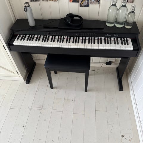 Gear4music DP-6 digitalpiano i svart utførelse. Selges billig grunnet at det mangler strømforsynings ledning.