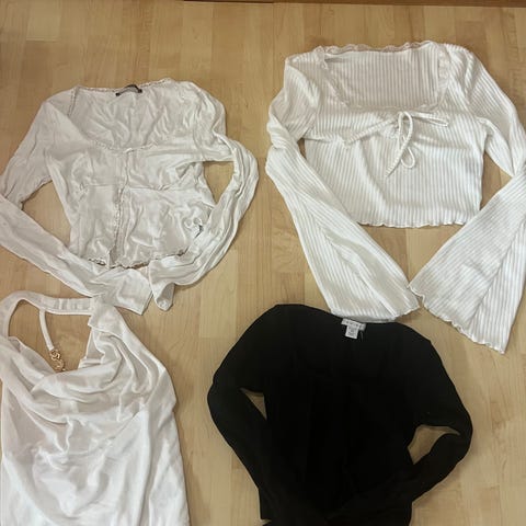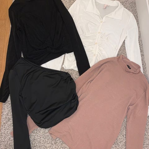 Selger en stor klespakke med både topper og bukser i ulike merker som Gina Tricot, Bikbok, Nelly og H&M.