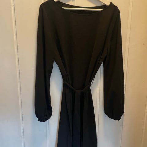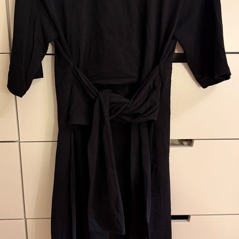 Filippa K hverdagskjole i størrelse XS for dame. Kjolen er i blå jersey og har lange ermer. Den har rund hals og knytebelte i livet som kan justeres for ønsket passform. Materialet er mykt og elastisk jersey som gir god bevegelighet og komfort. Egner seg som hverdagskjole og kan brukes både alene og med lag under eller over, avhengig av sesong.