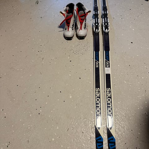 Fischer smørefri langrennsski med binding og tilhørende skisko for barn. Skiskoene er fra Fischer, med snøring og såle tilpasset bindingen. Passer til barn som skal gå klassisk langrenn eller bruke ski til lek og tur. Størrelse på ski 90 cm og sko er 26.