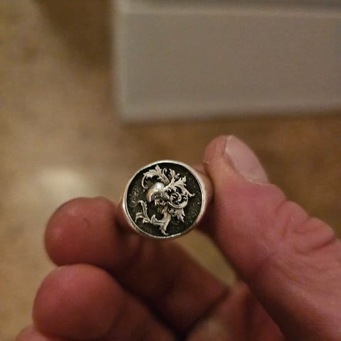 Selger et alien hodeskalle anheng (kan få med svart lenke med 925 sølv lås) stemplet 925 sølv.