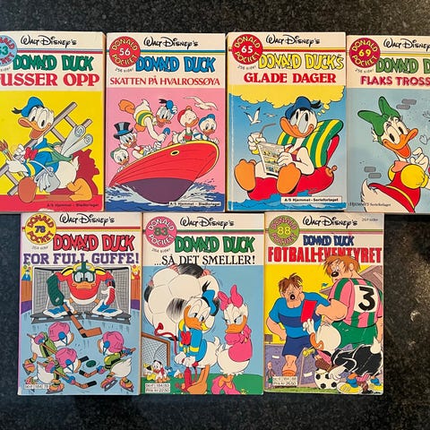 Samlingen på bildene inkluderer blant annet heftene nr 108 «Donald Duck ser syner» og nr 128 "Donald Duck gjør underverker»,