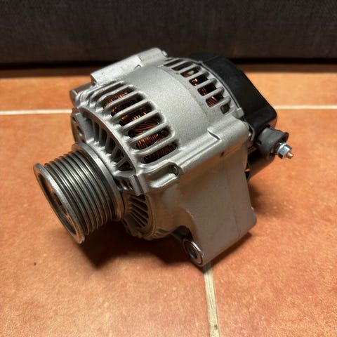 Mitsubishi outlander 2015 dynamo for personbil. Dynamoen er blitt regenerert som vil si at den er som ny. Enheten er en elektrisk generator som lader bilens batteri og forsyner det elektriske systemet med strøm under kjøring. Bildene viser dynamoens hus, remskive og elektrisk kontakt med flerpolet pluggtilkobling. Tar imot bud og spørsmål:)