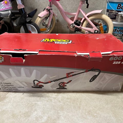 MEEC vegg- og taksliper med elektrisk motor og integrert tilkobling for støvsuger. Sliperen har langt teleskopskaft for arbeid i høyden på vegger og tak. Hodet er rundt og beregnet for bruk med slipepapir eller slipepad. Maskinen har håndtak med bryter og strømkabel, samt fleksibel støvsugerslange festet langs skaftet for tilkobling til egnet støvsuger. Egnet til sliping av gips, sparkel og andre plane flater innendørs der det er behov for støvavsug under arbeidet.