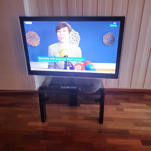 Grundig TV med flatskjerm. Enheten står på et trillebord med hjul. Egnet for vanlig TV-bruk. Gis bort mot henting søndag 1. mars - besvarer kun henvendelse hvis du skriver et forslag til tidspunkt å hente denne datoen.