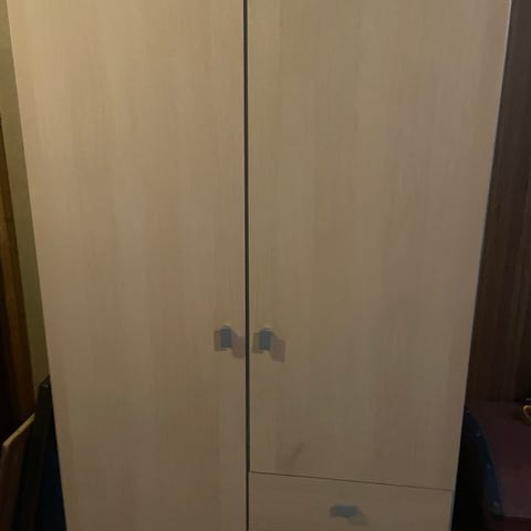 Tre store og tre små skapdører i trefiner fra 1960-70-tallet gis bort. Med Spiralux hengsler og håndtak. Mål store 181x51, mål små 61x51. Med overfals, 1 cm + 1 cm.