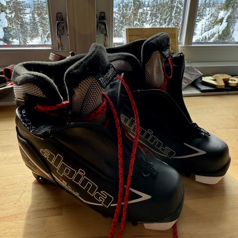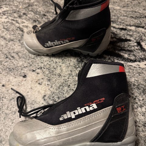 Pent brukte Alpina langrennsstøvler i str 31. Støvlene har overtrekksløsning med glidelås foran som beskytter snøringen mot snø og fukt. Sålen er tilpasset moderne langrennsbindinger (NNN-lignende system) og har grovt mønster under for bedre feste ved gange. Egnet til klassisk langrenn for barn. Fargekombinasjon hovedsakelig svart med hvite og røde detaljer.