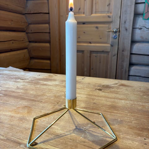 Lysestaken er formet av en sammenhengende metalltråd som gir et lett og moderne uttrykk, nesten som en tegning i luften. Den passer perfekt på middagsbordet, i vinduskarmen eller som en del av et dekorativt stilleben.
